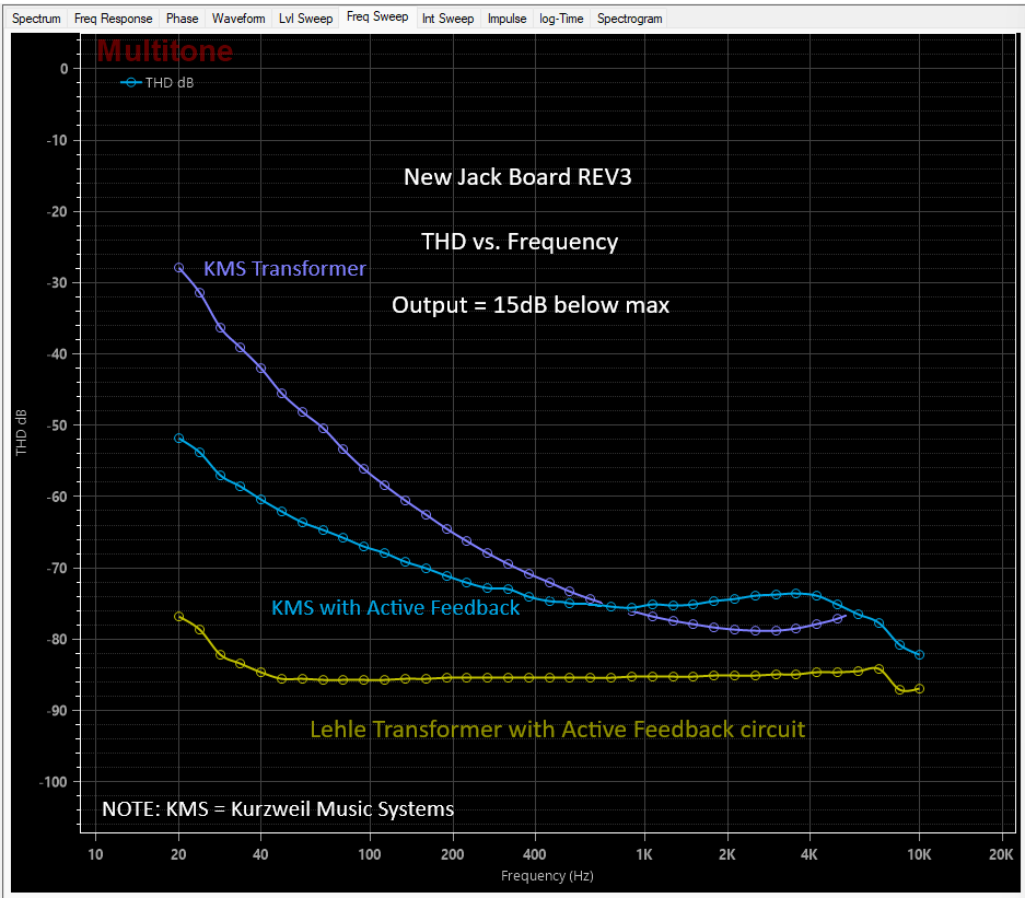 This audio jack board replaces the original Kurzweil K250 jack board mounted to the back panel. It comes with brand new 1/4" phono TRS jacks and new XLR jacks. Unlike the original boards, this board has an active feedback transformer driver circuit for the two audio line outputs, providing improved THD for low frequencies. This version of the jack board includes Triad Magnetics TY-141P transformers while gaining these benefits. NOTE: There is also a version of this board with Lehle brand Pro-Audio transformers pre-installed with ultra-low distortion available.